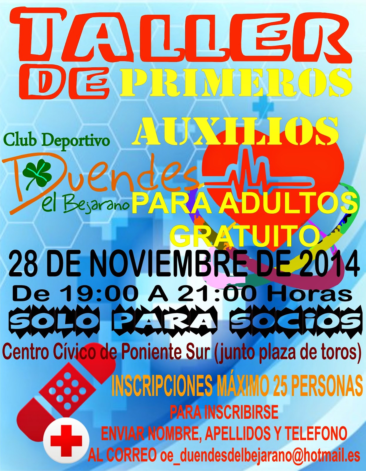 Las inscripciones se realizarán por correo electrónico a la dirección de los Duendes, (oe_duendesdelbejarano@hotmail.es), donde será necesario dar los siguientes datos: Nombre y apellidos, edad, teléfono de contacto y e-mail.